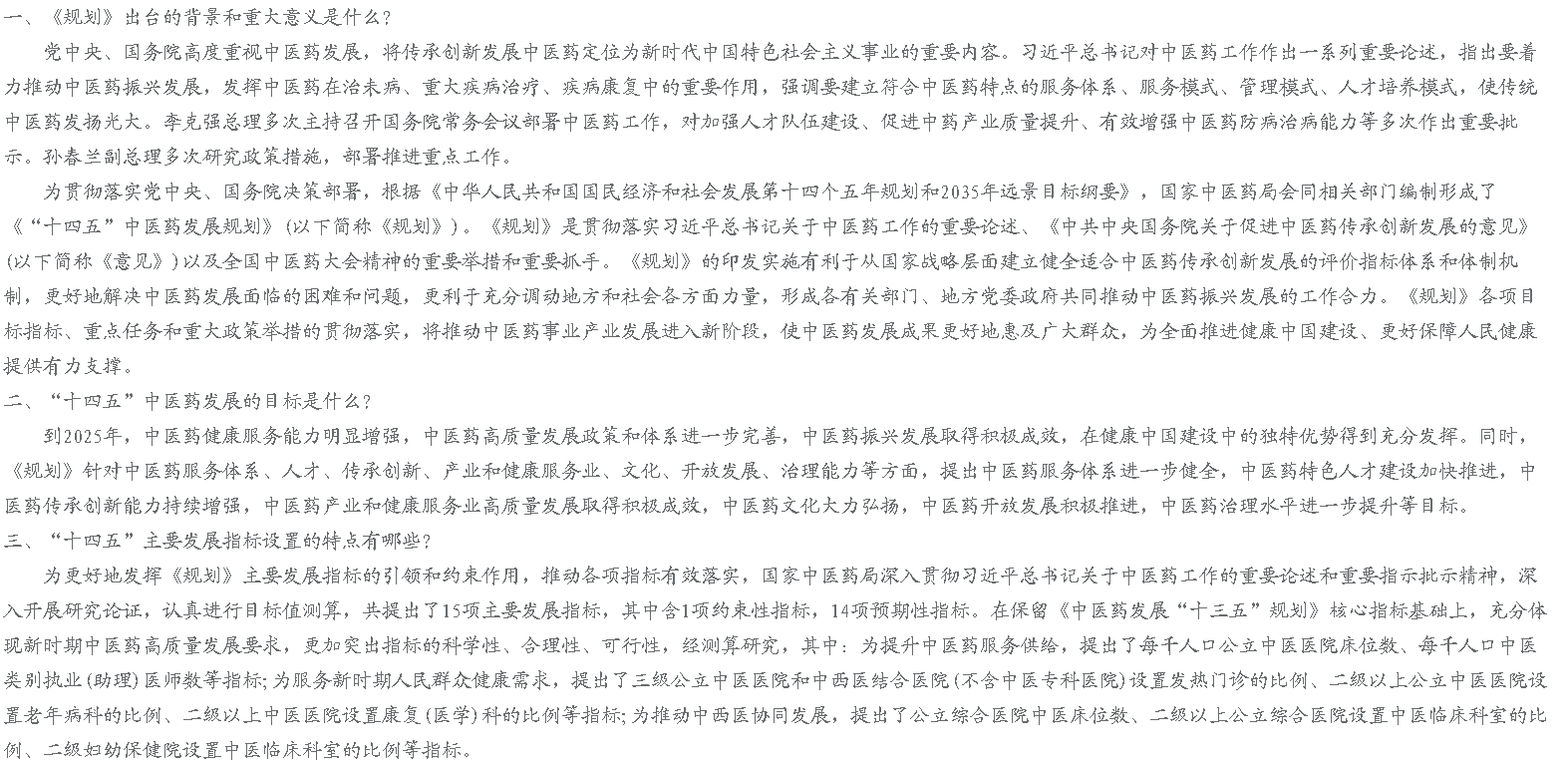 日前,國務(wù)院辦公廳印發(fā)了《“十四五”中醫(yī)藥發(fā)展規(guī)劃》,現(xiàn)就有關(guān)政策解讀如下: