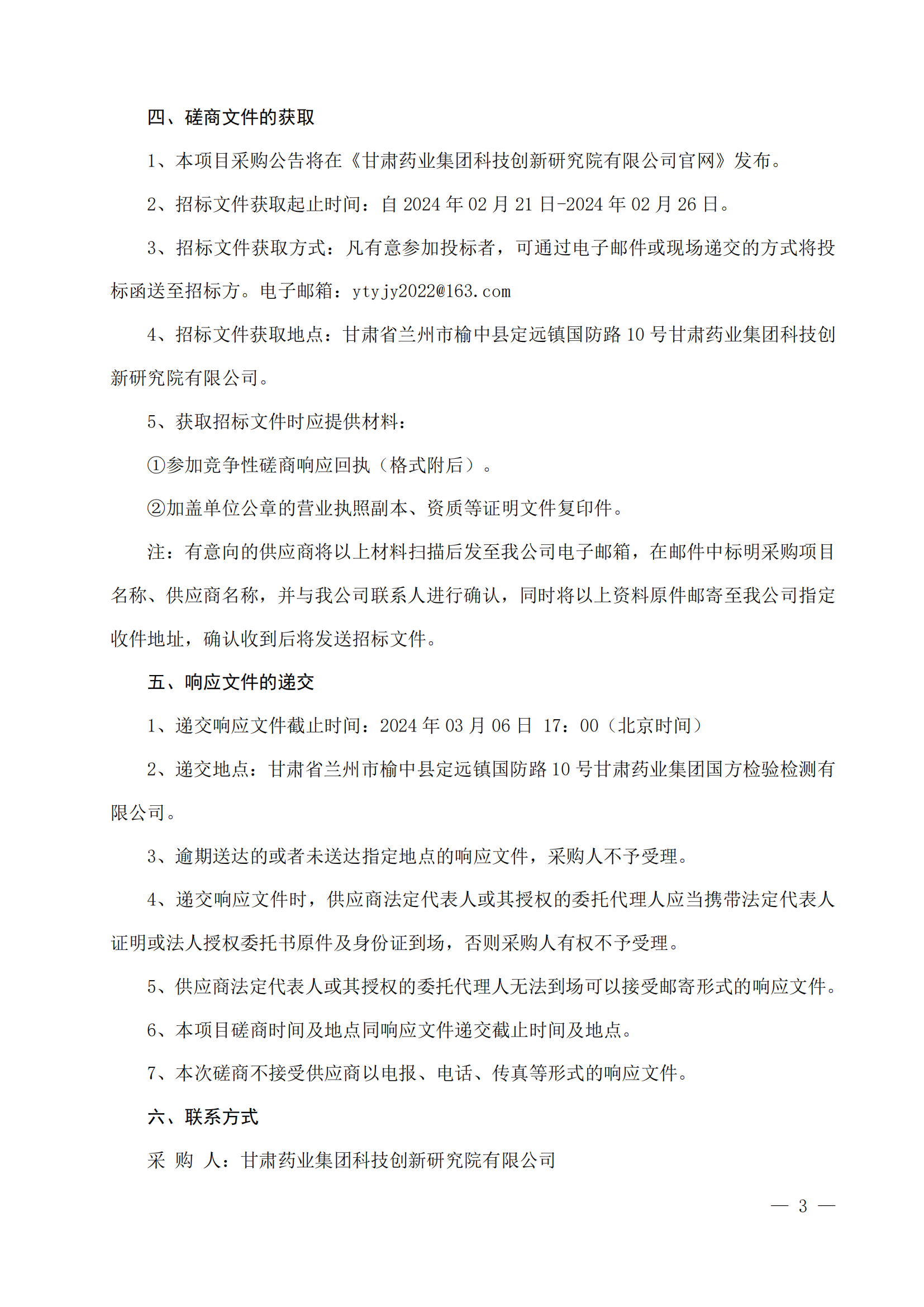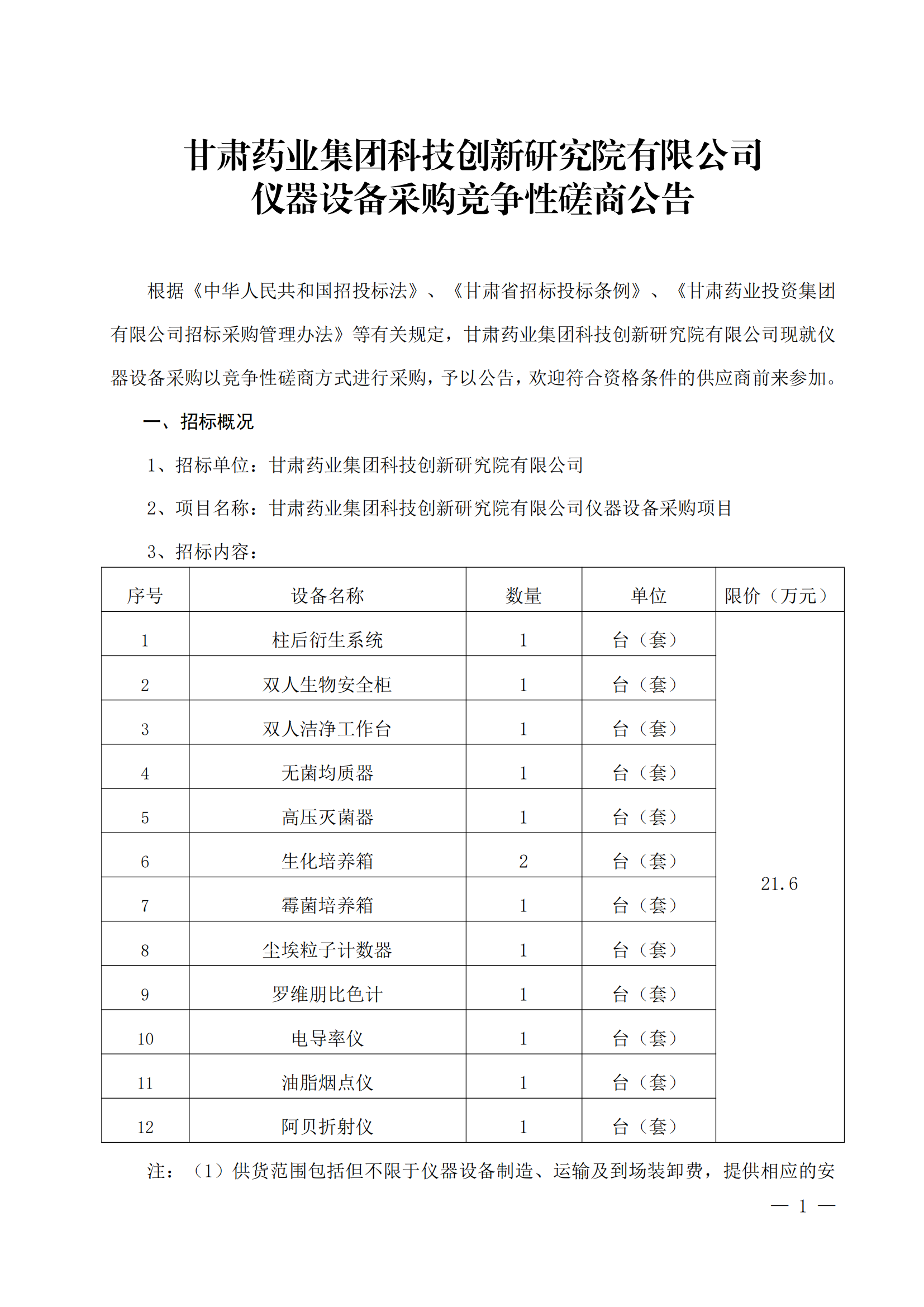甘肅藥業(yè)集團科技創(chuàng)新研究院有限公司儀器設(shè)備采購競爭性磋商公告