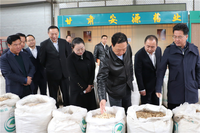 閆希軍一行先后來到隴神戎發(fā)藥業(yè)股份有限公司、甘肅藥業(yè)集團科技創(chuàng)新研究院、蘭州肽谷研究院、現(xiàn)代中醫(yī)藥健康產(chǎn)城融合項目擬建地、甘肅中藥材交易中心、現(xiàn)代化“智能云倉”、首陽江能中藥材交易市場、甘肅隴藥標準化生態(tài)產(chǎn)業(yè)園等地考察調(diào)研。考察中,閆希軍一行認真聽取了有關(guān)方面關(guān)于企業(yè)發(fā)展、項目謀劃以及產(chǎn)品研發(fā)等情況介紹,就做精做優(yōu)中藥材全產(chǎn)業(yè)鏈、推動甘肅中醫(yī)藥產(chǎn)業(yè)高質(zhì)量發(fā)展交換了意見。